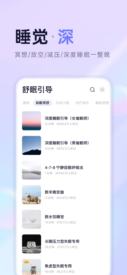 2、【专业级调理技巧】心理学博士、睡眠专家和资深主播组成强大制作团队,提供助眠呼吸调节、冥想放松等多样化调理技巧。