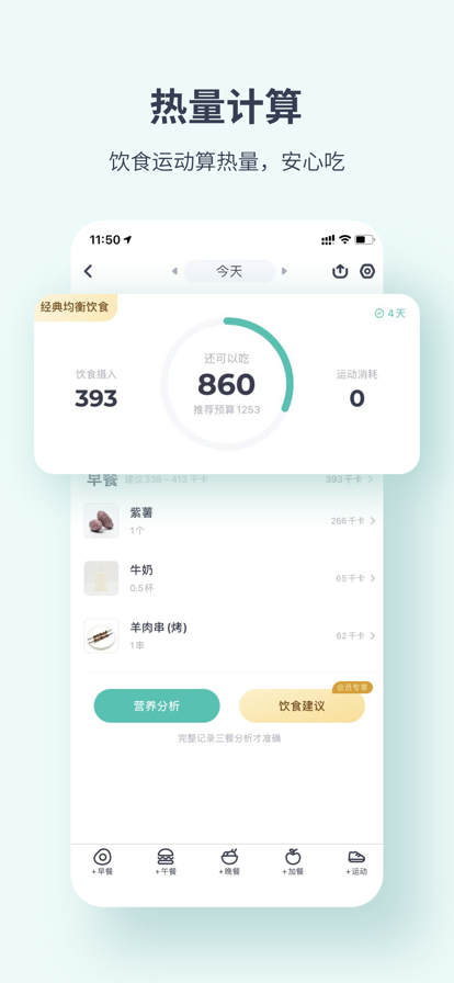 3、方便,AI拍照智能识别,便捷记录三餐热量及日常消耗,HealthKit记录即时同步,科学分析数据,改善生活方式才更有目标。