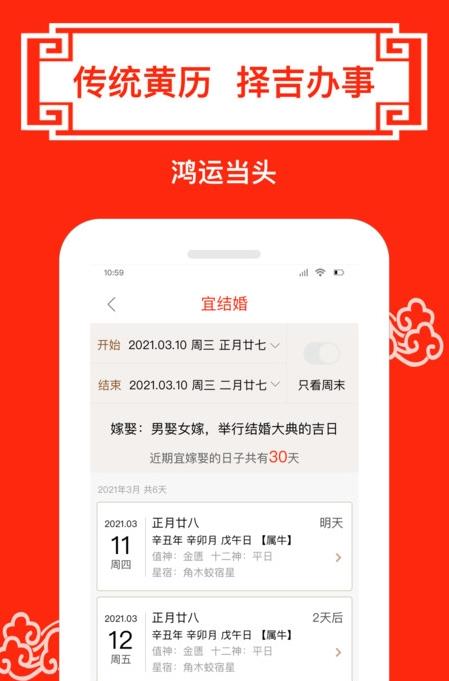 3、吉日查询:开业,结婚,搬家,好日子一查便知。