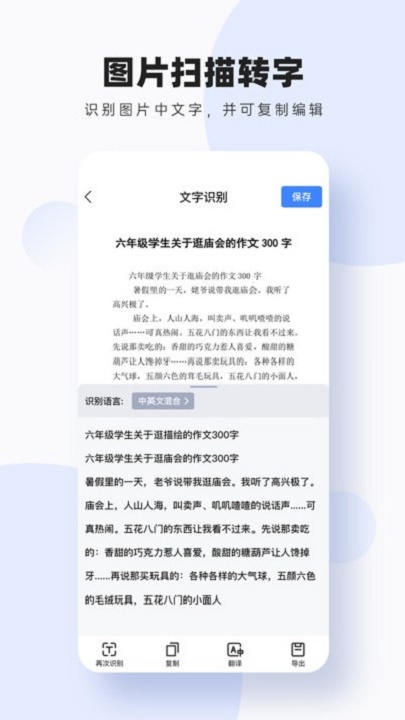 3.图片扫描转字app的扫描速度很快,能够提高软件的扫描准确率。