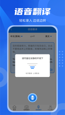 轻松中英翻译君是一个特别便捷的教育翻译软件,这是多种不同的语言翻译,而且翻译特别的快速,准确率也特别的高,让我们轻松的去交流,没有任何的语言障碍,操作起来也特别的方便,满足每一个用户的需求,并且里面还提供有口语练习,外语学习等多种不同的功能。