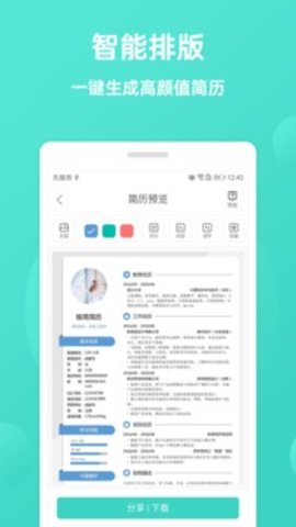 1、操作简单,模块丰富。上班族和学生都可以使用。支持封面和自荐信,方便学生求职。