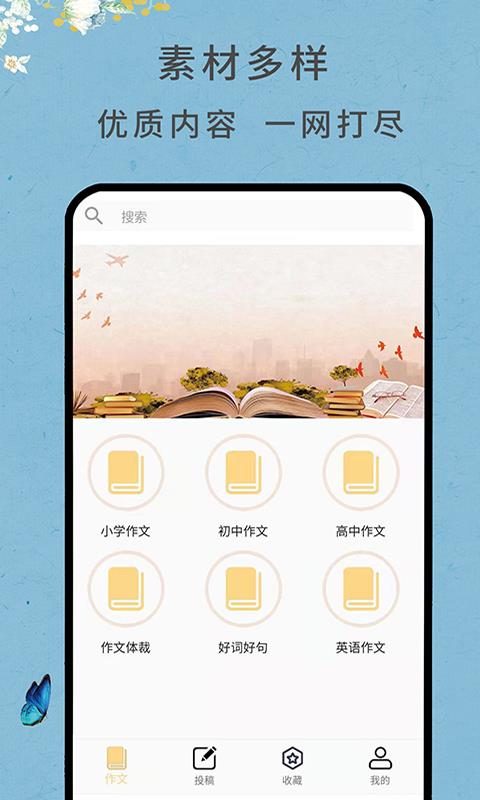 4.软以随时随地使用,不需要到处寻找作文资料,只需一部手机就能够方便地找到自己所需的作文素材和范本。