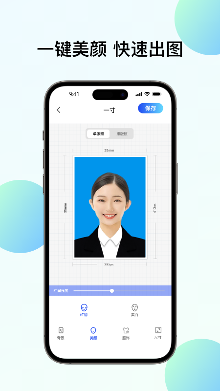 1、一键美颜,快速出图,让你的证件照照片更加的好看哦!