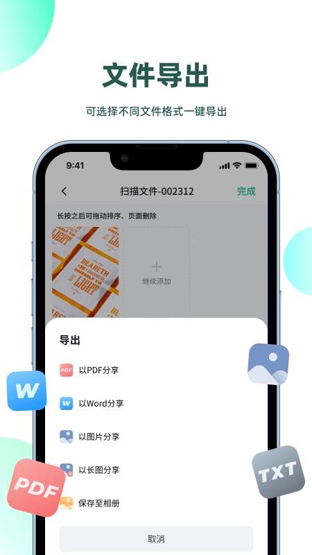 3.扫描转换:快识别不仅能够高效识别文字,还可将扫描文件轻松转换成PDF等多种格式,方便文件管理。