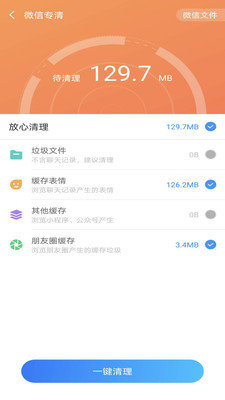 1.一键清理精灵app会智能的为用户检测各类的文件占用的信息问题。