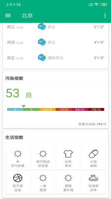 2、生活指数的内容非常详细,包括了空气质量、舒适度、紫外线、污染指数等;