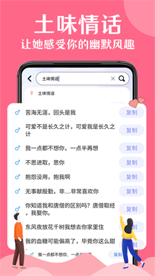 总结:情话帮作为一款专业靠谱的聊天话术软件,能够有效解决直男直女在聊天中遇到的尴尬局面。详细介绍:在恋爱聊天中,很多人都会遇到“不知道该说什么”、“怕说错话”等尴尬情况。这时,情话帮就能派上用场了。它提供了多种场景下的聊天话术,让你能够根据不同的情境选择合适的表达方式。无论是约会时的小惊喜、生日时的祝福、还是吵架后的和解,情话帮都能为你提供专业的指导建议,让你轻松应对各种聊天场景。同时,它还支持一键搜索关键词功能,让你能够快速找到最适合自己的话术内容。