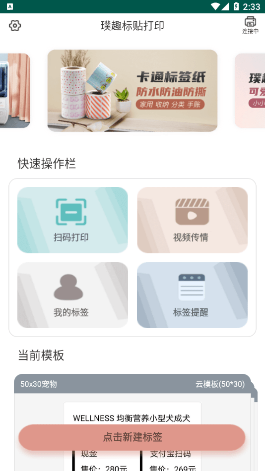 1. 首先,用户需要通过官方网站下载并安装璞趣标贴打印软件,并注册登录账号。2. 进入软件后,用户需要开启蓝牙功能,并选择正确的打印机型号进行连接。连接成功后,软件将显示“已连接”提示。3. 接下来,用户可以返回首页新建标签,并选择官方提供的标签模板进行编辑。用户可以根据商品的要求添加文本、一维码、二维码、编号等信息,并进行自定义设计。4. 编辑完成后,用户可以点击“打印标签”按钮,使用已连接的打印机进行打印。