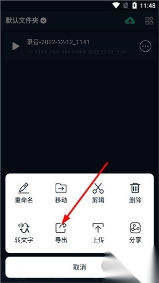 3、完成导出操作:在弹出的工具栏选项里,选择导出选项,即可把选中的录音导出保存。