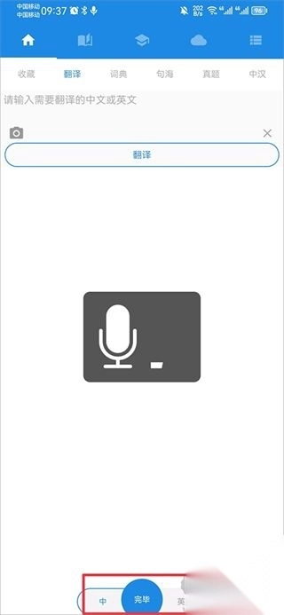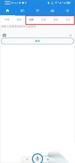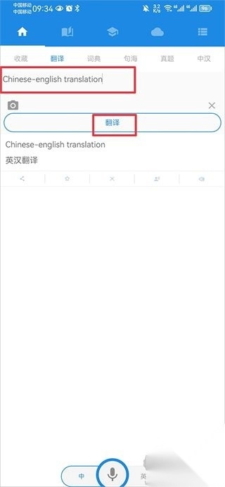 4、除了可以翻译中文或英文,你还可以使用软件查询中文和英文的词语、句子、真题,中汉等。