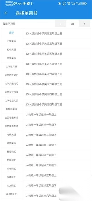 6、然后在单词书界面中选择你要学习的课本,并点击确定。