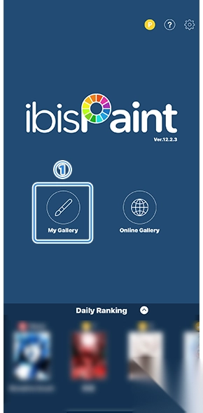 此屏幕是 我的图库。起初,没有图稿,但您的图稿将在此屏幕上排成一排。点击②[ 创建新画布按钮 ] 创建新画布。
