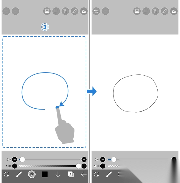 绘制在③[ 帆布 ] 只需用一根手指轻扫即可。