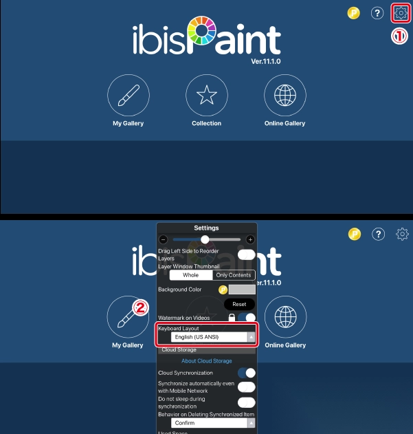 在 iOS 设备上,“[”和“]”键可能不起作用,具体取决于您使用的键盘类型。在这种情况下,请通过以下方式选择与您的键盘相对应的布局类型 ②键盘布局① 设置窗口。