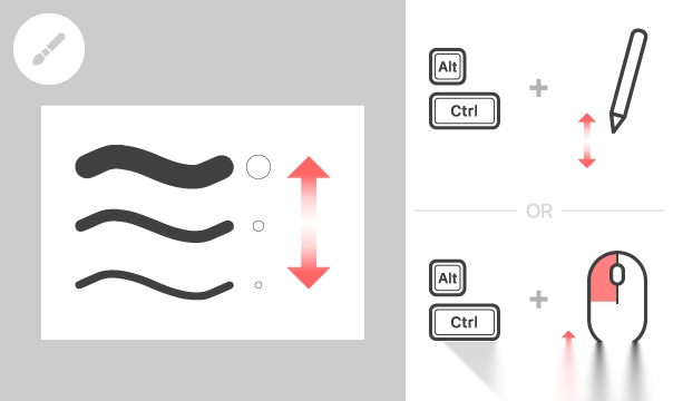 按住 [Alt 键] + [Ctrl 键] 同时拖动笔。如果使用鼠标,请在按住 [Alt 键] + [Ctrl 键] 和鼠标左键的同时移动鼠标。