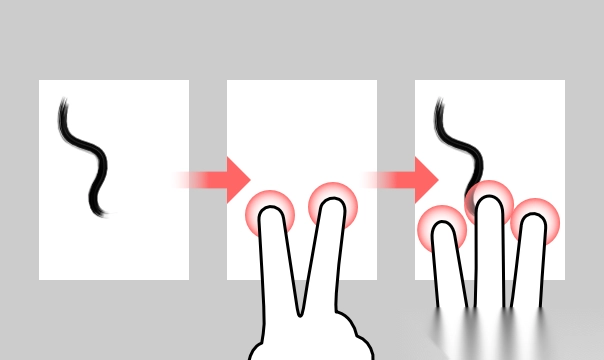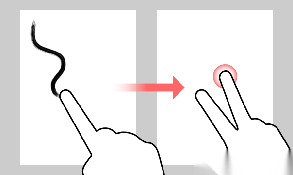 可以通过用两根手指点击画布来撤消上一个操作。以前撤消的动作可以通过用三根手指点击画布来重做。