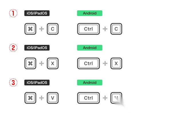 键盘快捷键可用于连接到蓝牙或 USB 键盘的 iPhone(iOS 14.0 及更高版本)、iPad(iPadOS 14.0 及更高版本)和 Android 设备。