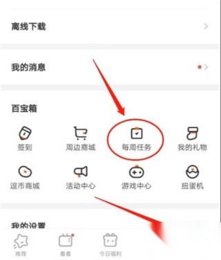 3、通过“每周任务”领取