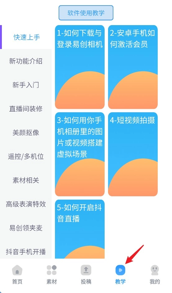 4、进入教学版块,观看各式教程,可以学习丰富的直播及摄影技巧。
