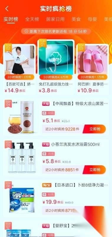 实时浏览疯抢专区,可查看抢购时间与商品价格。