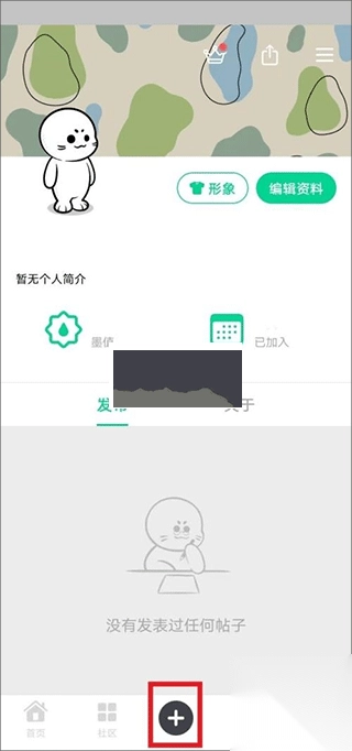 1、打开滴墨社区app页面,点击选择下方添加图标