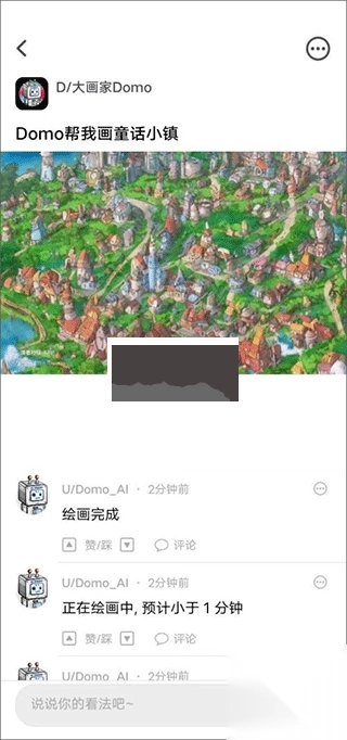 3、根据需要添加Domo帮我画童话小镇标题,点击右上角发布