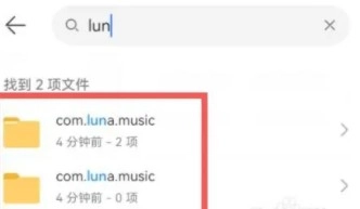 2、接下来,在搜索框内输入关键词“luna.music”,这样便能找到“com.luna.music”文件夹,随后点击将其打开。
