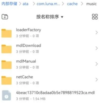 3、最后,找到其中名为“cache/music”的文件夹,点击将其打开,便能找到下载的歌曲。