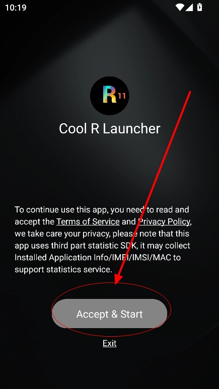 下载安装Cool R Launcher启动器,点击同意进入
