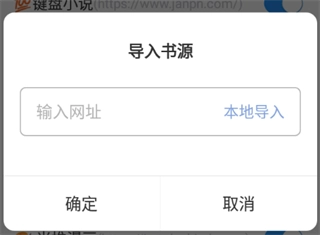 5、根据提示粘贴书源的网址,点击“确定”完成导入