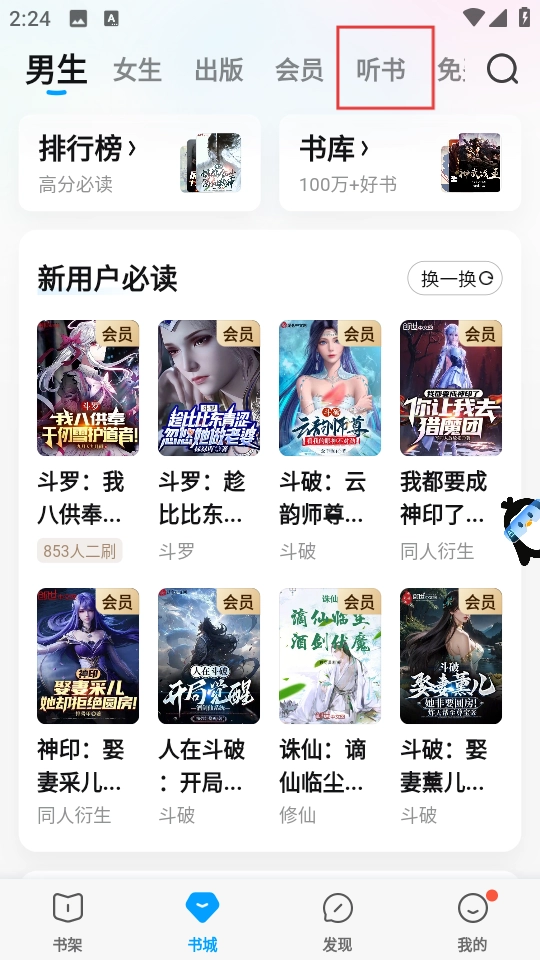 1. 轻点顶部的听书按钮,即可进入听书页面。