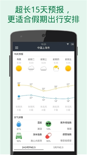 3、可精准定位你的位置,并依据用户所在地点,为您呈现当地最新的天气预报,操作十分简便。