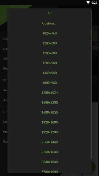2. 轻点软件左上角的“三”图标,在其中找到resolution选项,进而挑选壁纸的分辨率。