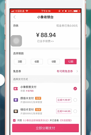 4、依据个人实际状况挑选恰当的分期方式,随后确认订单。
