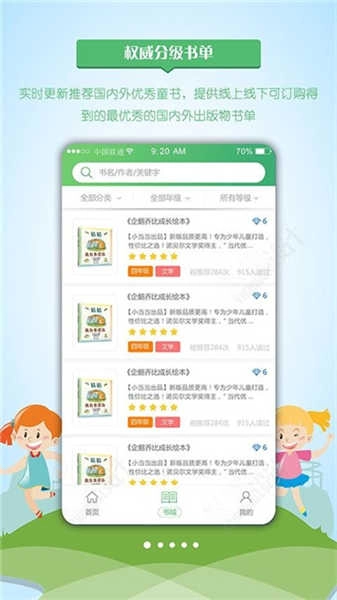 2、提供分龄阅读资源分类服务,覆盖幼儿园、小学低年级、中年级、高年级等不同阶段,充分满足各年龄段孩子的成长需要。
