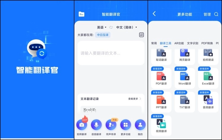 1. 智能翻译官作为一款多语言智能翻译工具,融合了语音识别、文本翻译以及同声传译等功能。