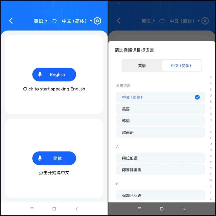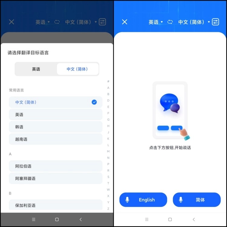 3、开启同声传译模式,说话同时即刻翻译,出国交流畅通无阻。