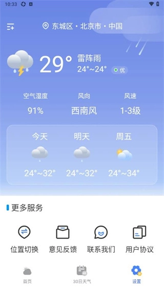 预报:软件提供分钟级别的天气预报,助你出行毫无后顾之忧。