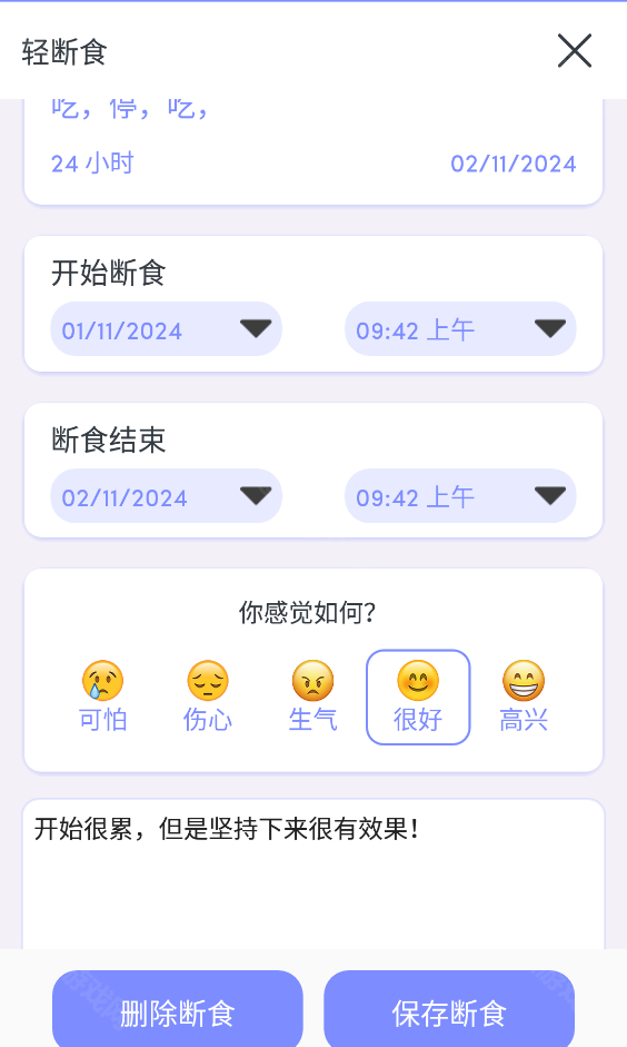3、完成所选的断食计划后,不妨记录一下断食期间的感受,或是下次断食需留意的要点。