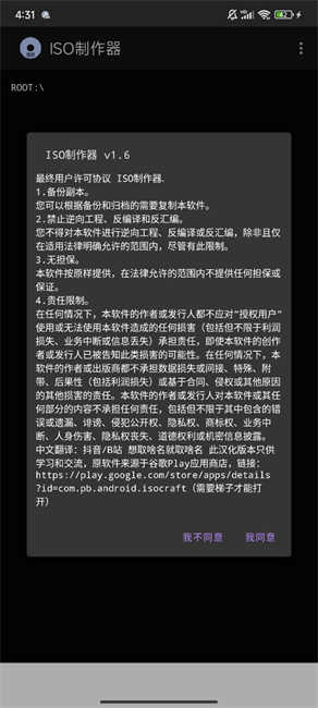 1. 下载并安装ISO制作器,安装完成后在手机上启动该应用,对于出现的权限提醒点击同意。