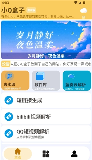 小Q盒子,堪称一款宝藏级的实用工具合集软件,内容丰富得超乎想象。打开它,你会惊喜发现里面汇聚了几十种精品工具软件,无需联网就能轻松使用。它所涵盖的功能极为广泛,像图片去水印、GIF动图分解、语音合成、声音转换、语言翻译、个性签名设计,甚至连王者荣耀战力查询等诸多服务都一应俱全。这款软件可是大神用户凭借热爱自制打造的,全程完全免费,纯粹是为爱发电。要是你正有相关需求,别犹豫,快来小Q盒子体验一番吧!