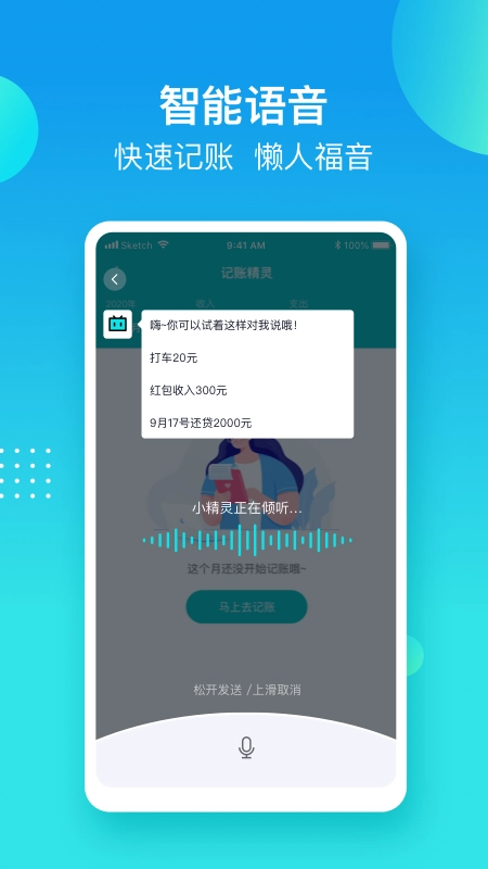 【语音记账】无需动手,随时随地都能记账,帮您节省宝贵的记账时间,让记账更轻松。