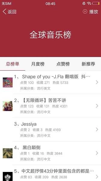 2、同时还有各类榜单推荐相伴,像新歌榜、热门榜、收藏榜,以及日榜、月榜等等,助你轻松发现最新最热的歌曲。