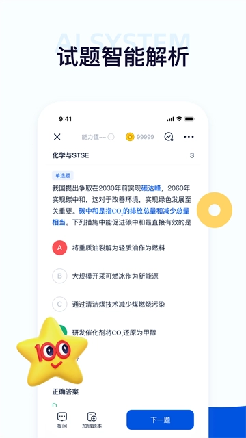 考试在线是一款集智能刷题、在线能力测评于一体的手机应用,它能为学生提供在线考试、在线刷题、复习备考等服务,智能化的在线考试、快速生成个性化测评报告,能有效帮助考生了解自身的能力长短和短板优劣并基于此给出个性化、智能化的提分攻略,全方位消灭备考盲点。的智能刷题功能结合了智能算法,能为学生精准推荐出最合适的练习题、实现高效练习、快速提分,精选天星教育资源库里的精编试题,优质题源有保障,覆盖了高中个各门学科并配有详细的解析和答案讲解,有了未来脑考试在线,考试也可以变得很轻松!