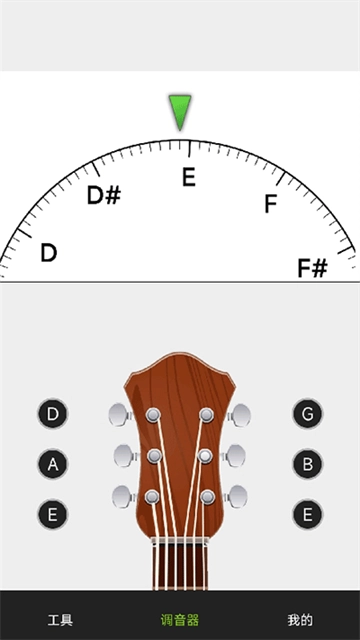 不仅如此,小熊调音器功能强大,操作却极为简单。使用时,只需将手机靠近吉他,依次弹拨每根弦,就能测量各弦的音准。首先观察测得的音高,若音高正确,再看指针指示:指针偏左,意味着音偏低,需将该弦拧紧;指针偏右,则表明弦偏高,应把弦拧松。点击底部按钮,还能聆听各弦的示范音。