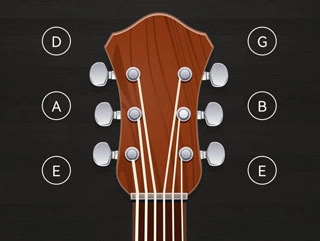 2、拨动琴弦,将琴弦调校至标准音,6到1弦的音高顺序应为EADGBE 。