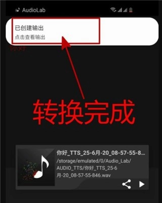 4、转换成功后,会收到转换完成的消息提示,届时试听一下效果就行。