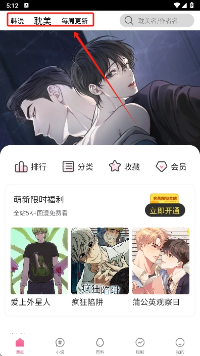 1、打开软件在首页可以看到各种漫画