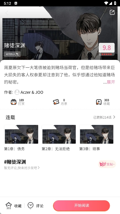 2、点击漫画封面或标题,进入漫画的详细阅读页面